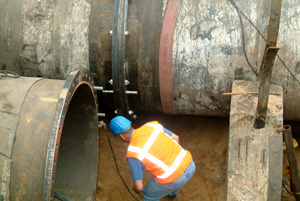 The contract involved cutting out sections of 72" diameter pipe work; to allow access for internal inspection of the pipeline. On completion we flanged all open ends and re-installed the pipe sections.